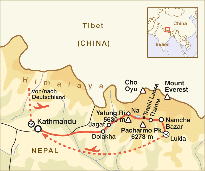 Sie verlassen Nagaon in Richtung Trashi Laptsa und biegen kurz nach dem Ort rechts ab ins Yalung-Tal. Nun geht es stetig bergan, bis Sie auf ca. 4.950 m Höhe. Die Szenerie ist toll, denn Sie befinden sich hoch über dem Rolwaling Tal, inmitten der wilden Gletscherberge des Rolwaling Himal (Chukyima Go mit 6.258 m, Ramdung mit 5.930 m, Kang Nachugo mit 6.737 m, Dragnag Ri mit 6.802 m uvm.). Nach einer Rastpause erfolgt der Abstieg über die gleiche Route zurück nach Nagon. Übernachtung im Zelt. Gehzeit: 7-8 h/Aufstieg und Abstieg ca. 800 m