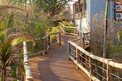Die Chobe Safari Lodge befindet sich direkt an der Grenze zum Chobe Nationalpark ca. 150 Meter vom Chobe Flusss entfernt. Hier treffen gleich vier afrikanische Länder aufeinander: Botswana, Namibia, Simbabwe und Sambia. Der ideale Ausgangspunkt für eine Reise in den Chobe, nach Victorai Falls oder in den Caprive.
